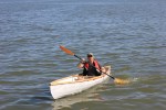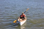 The canoe is already fully coated with epoxy resin and a coat of primer, and has endured a few rainstorms and a little snow while sitting outside, so I wasn’t concerned about getting her wet before the final sanding, painting, and finishing.  I drove to the Chesapeake Bay, donned my kayaking vest, grabbed a paddle and launched.