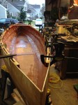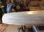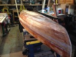 At this point the canoe has achieved its final structural shape.  It needs a lot of sanding and finishing work to get to the end.  I need to do this work outside of my shop but the weather in January is too unpredictable to plan so I have put the project into storage until late February or March when I can work outside and complete the required steps.  I don’t think I have 60 hours into the project at this point and it is pretty far along and I am pretty please with my first attempt at such a project.  I am not sure how long it will take to get the finish to the point where I am satisfied but I think can see the finish line and it looks like the launch ramp at my marina.