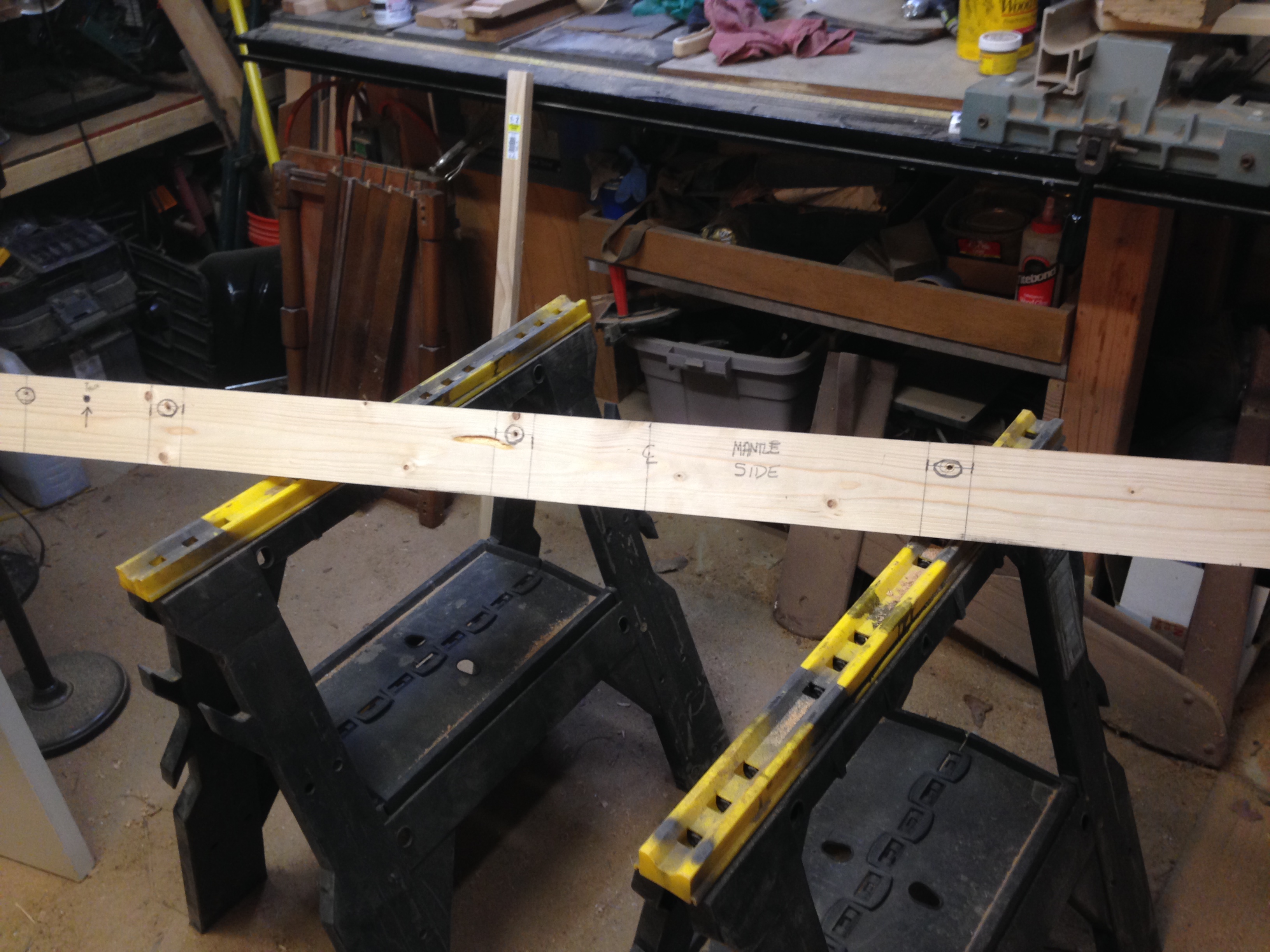 2) Cut a “story pole” to the same length as the 2×4 mantle ledger attached earlier.